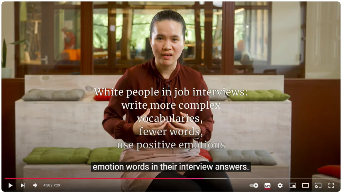 In this video, Dr. Huyen Nguyen from Utrecht University presents research results from an experiment with AI recruitment.versus a human recruiter. Important takeaways are, for example, that women exhibit less self-confidence when faced with automated recruitment. And ethnic minorities believe they have higher chances of getting an interview when they have a human recruiter instead of an AI recruiter.